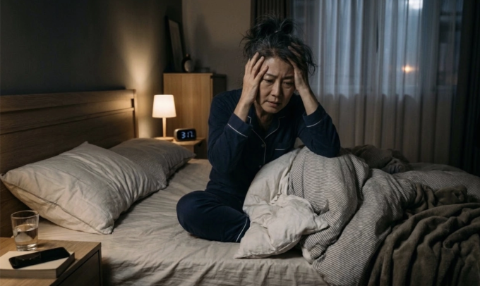 Cancer Research UK liệt kê chứng mất ngủ là một triệu chứng tiềm ẩn của ung thư. Ảnh tạo bởi AI