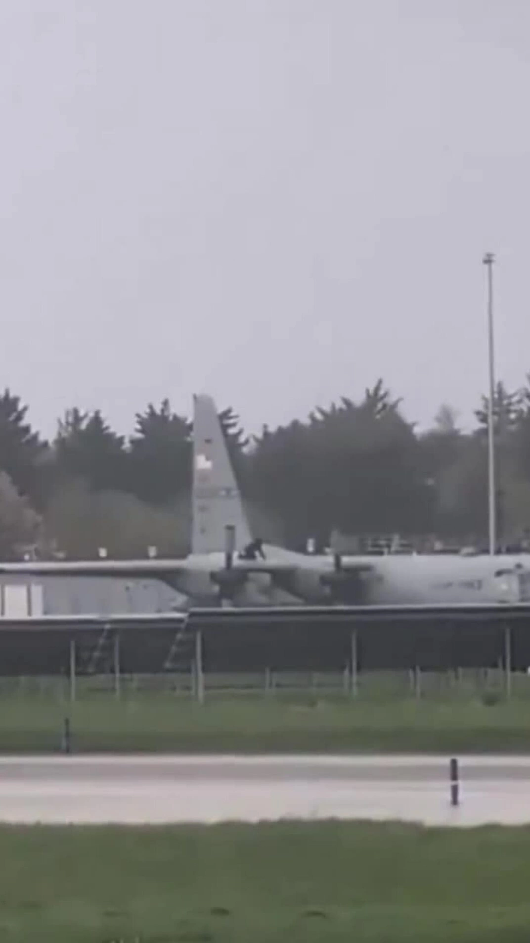 Người đàn ông phá hoại vận tải cơ C-130 Mỹ tại sân bay Shannon của Ireland ngày 11/4. Video: Xworld24x7hr
