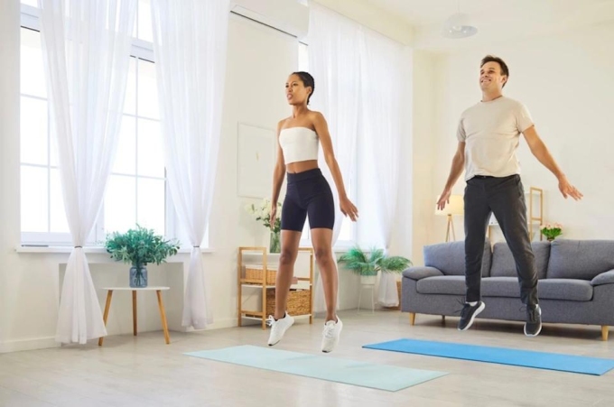 Anh gợi ý một phiên bản nâng cao của bài tập này theo hình thức luyện tập cường độ cao ngắt quãng: nhảy 20 giây và nghỉ 10 giây,lặp lại 8 hiệp trong khoảng 4 phút. Nhịp độ trên giúp đẩy nhịp tim lên cao,thúc đẩy tuần hoàn máu,tăng tốc độ đốt cháy chất béo và tạo ra kích thích cần thiết để duy trì mật độ xương.