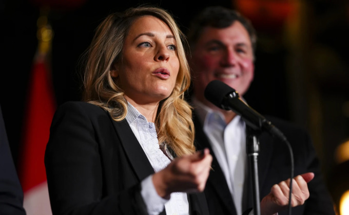 Bộ trưởng Ngoại giao Canada Mélanie Joly và Bộ trưởng Tài chính Canada Dominic LeBlanc (phía sau). Ảnh: AP