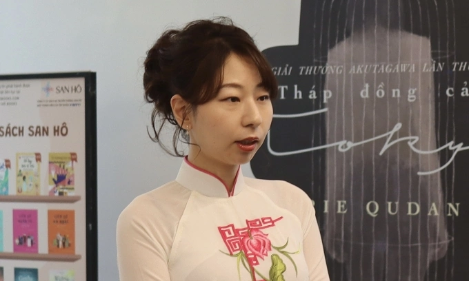 Nhà văn Rie Kudan tại sự kiện chiều 30/11. Ảnh: Ban tổ chức cung cấp