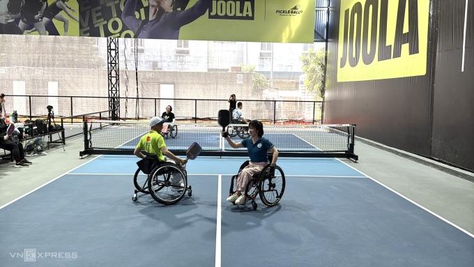 Không chỉ anh Huân,chị Hoàng Hải Yến,54 tuổi,ở phường Bạch Mai,Hà Nội cũng đều đặn tự lái xe ba bánh đến sân tập từ tháng 7. Bị khuyết tật vận động bẩm sinh,chị Yến nhận thấy pickleball áp lực lên cơ thể vừa phải. Sân bóng với chị không chỉ là nơi rèn luyện sức khỏe mà còn là không gian xóa bỏ mặc cảm.