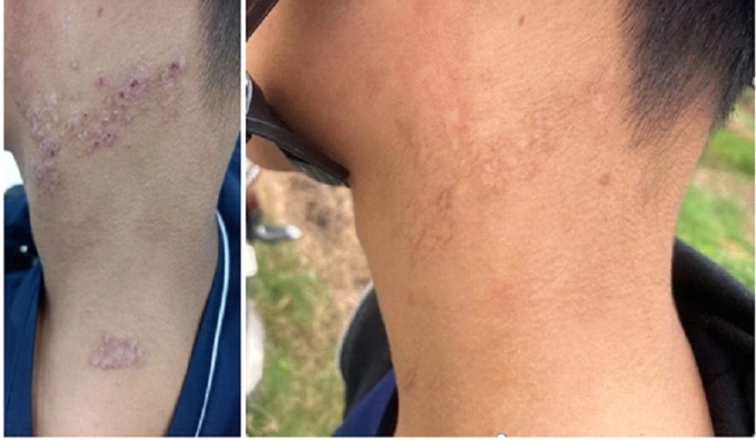 Hình ảnh vết tổn thương trước và sau điều trị. Ảnh: Bệnh viện cung cấp