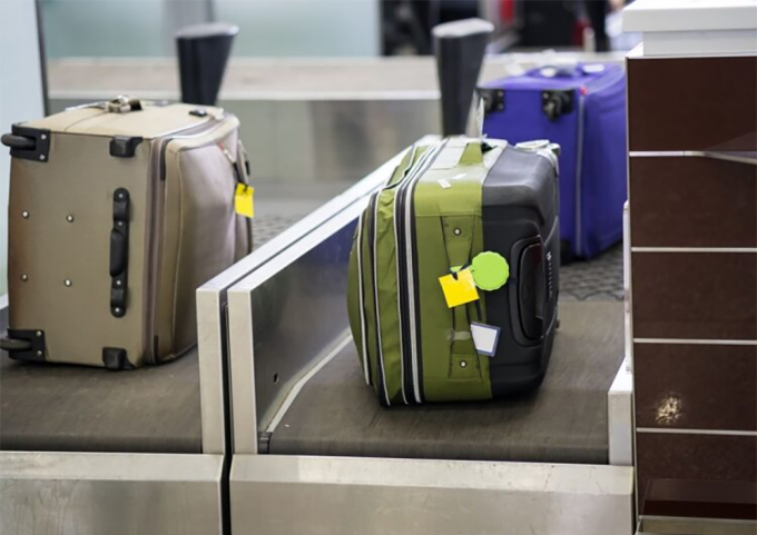 Hành lý đặt trên cân trước khi vào băng chuyền,được khuyến nghị bánh xe quay ra ngoài. Ảnh: Bamboo