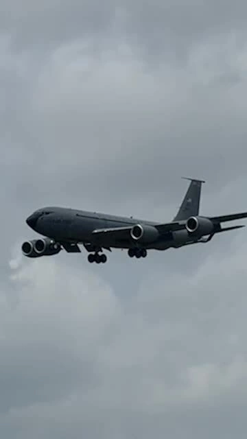 Máy bay tiếp dầu KC-135 Mỹ đến căn cứ Tinker hôm 14/4. Video: KOCO 5 News