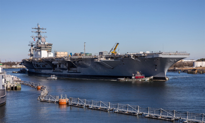USS Dwight D. Eisenhower trở về nhà máy đóng tàu Norfolk ở bang Virginia vào tháng 1/2025 để bảo dưỡng,sau khi triển khai làm nhiệm vụ ở Trung Đông giai đoạn 2023-2024.